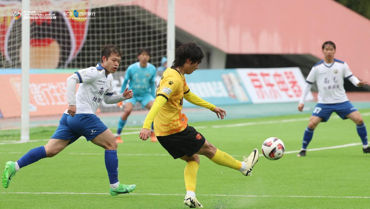 南充丝绸源点队与成都锦城队这对川东赛区的老对手本轮迎来“三番战”。此前两次交手,南充队虽然都遗憾失利,但也都在强大的成都队身上取得了进球。本场比赛他们也延续了这一纪录。上半场,成都队就火力全开打进了5个球,比赛的胜负早早失去了悬念。在尾声阶段,南充队的中场大将张灏蓝面对门将冷静破门,打入了南充队与成都队三场交锋中的第三粒进球。成都队随后再入一球,以6:1的大比分从客场带走3分。