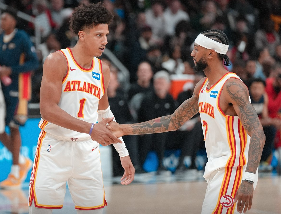 老鹰上一场比赛127-115击败了热火,杰伦·约翰逊贡献了29分11个篮板11次助攻的三双数据,麦科勒姆26分,沃克19分7次助攻。
